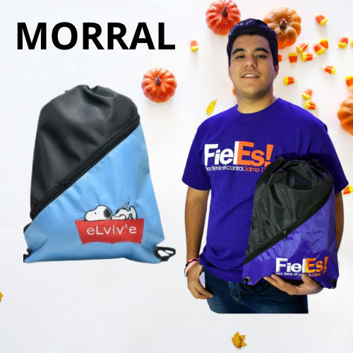Morral publicitario ecologico incluye logo a una sola tinta. Preguntar precio en otras telas y estilos de tecnicas de logos en los morrales.